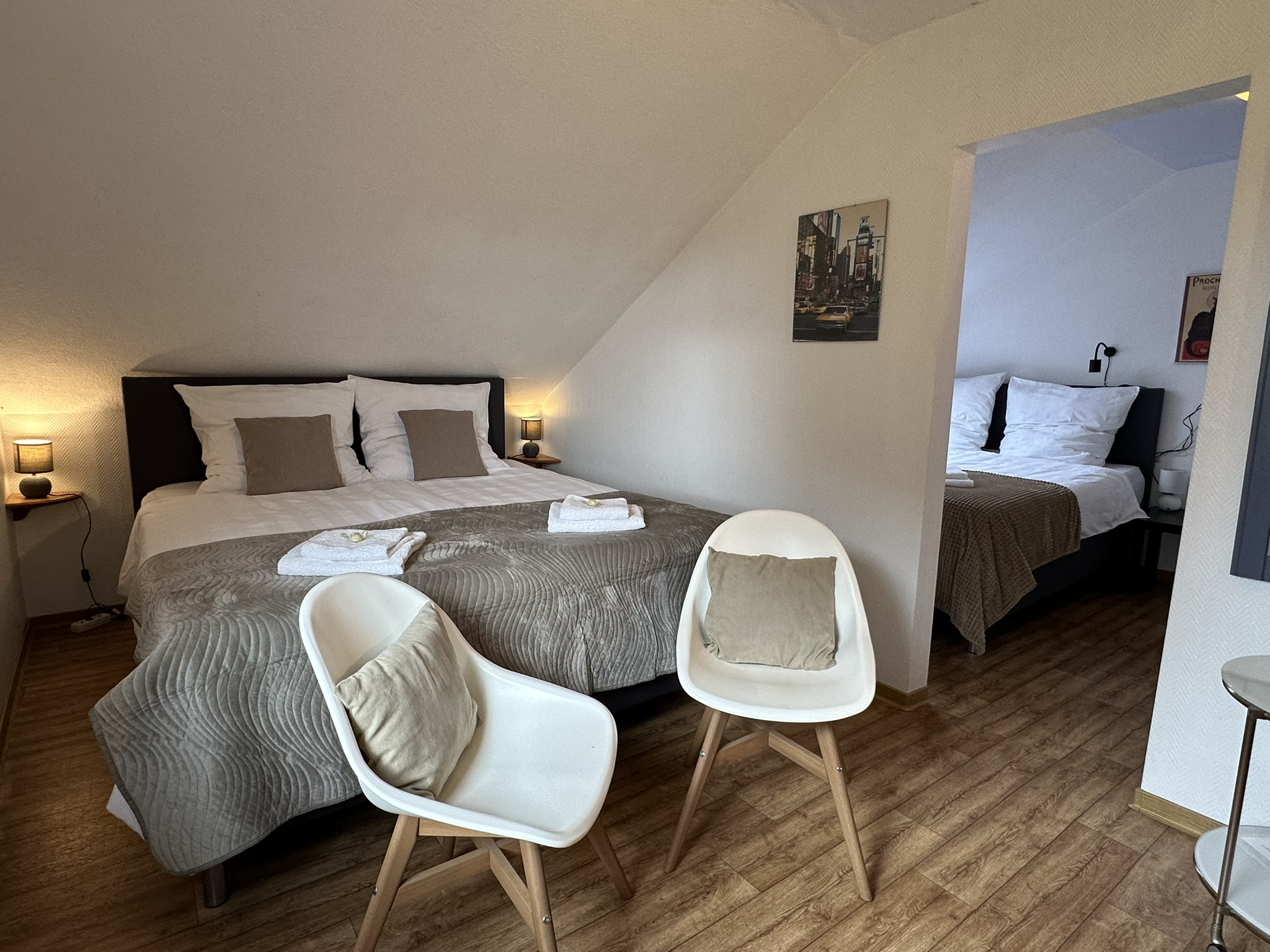 On the second floor, you’ll find this four-person room with a view of the garden, surroundings, and the Rothaar Mountains.